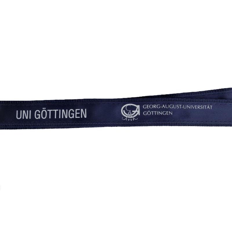 Das Schlüsselband ist in den Farben rot und blau erhältlich. Beim blauen Schlüsselband handelt es sich um ein 2-lagiges Premiumband mit Unterband aus Polyester und Oberband aus Satin.